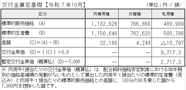 また、当該交付対象牛に係る交付金の交付については、概算払を行います。標準的生産費及び交付金単価の確定値については、令和8年2月上旬に公表する予定です。